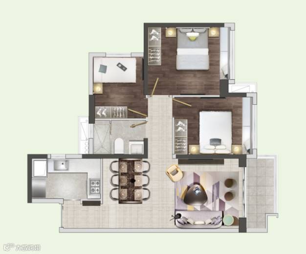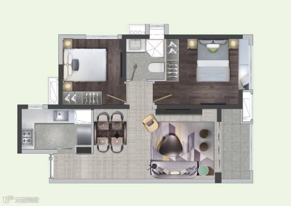建筑面积约75㎡:方正格局,紧凑不急促,每间房每个角落的尺度都是经过精心考量的,在有限的空间里造出无限的可能,房子虽小,却住得下一家人的温馨与幸福。