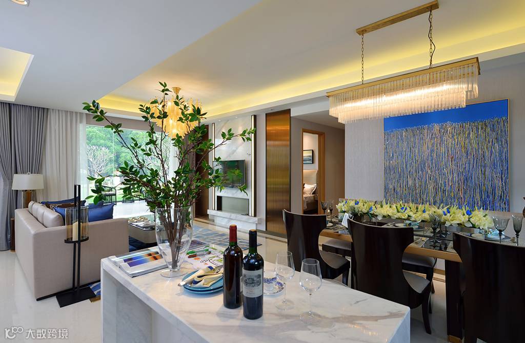 到达海玥样板房,小编第一反应是:这房子可真宽敞通透,舒服的感觉扑面而来。这还要感谢餐厅与客厅直接连通的设计,由于中间不设隔断,减少空间中的阻碍感,不仅节省了空间,也能使房子看起来更加开阔明亮。
