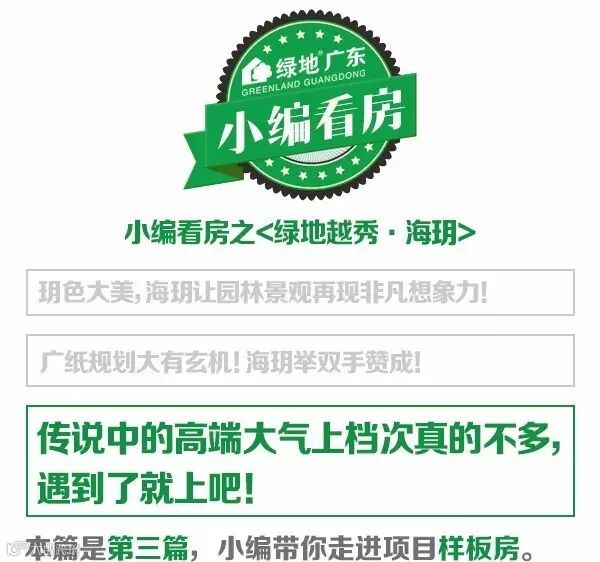本期「小编看房之绿地越秀·海玥」到这里就结束了,查阅本期专题其它两篇文章请点击右上角进入公众号—查看历史消息。如果你对本期「小编看房」专题有什么疑问、建议,或者你还希望小编替你去看「绿地广东」旗下的哪个楼盘项目,都可以移步正文下方留言,小编将尽力为你排忧解惑。
