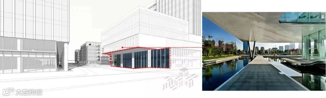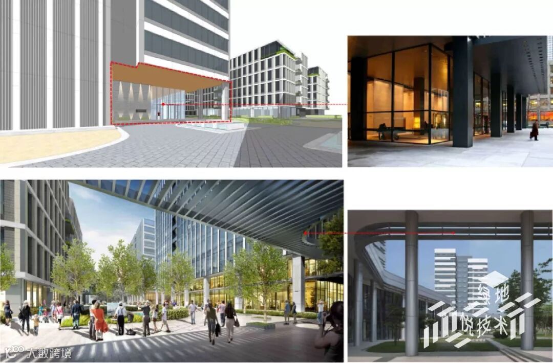 同时,在绿地IAC,小尺度的开放社区,克服一般CBD不利步行的顽疾,四通八达,轻松通行。大尺度的挑空空间,结合水景、绿化,营造舒适的林荫道氛围。骑楼亦加强引导性与人行舒适性。