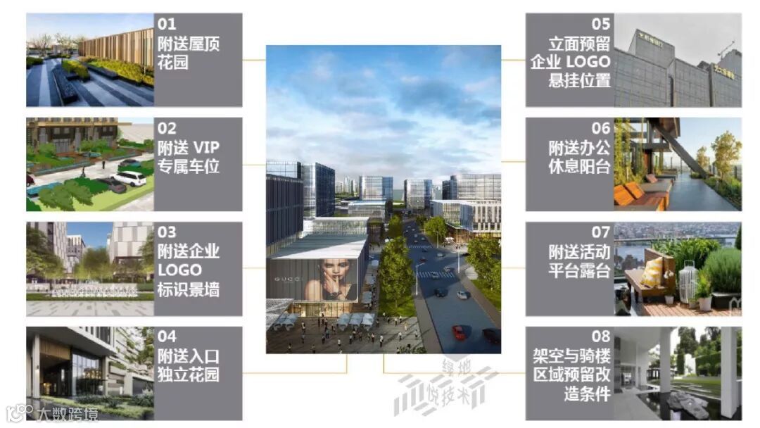 屋顶花园、VIP车位、LOGO识别墙、休息阳台……等附送内容,大大提高产品性价比。