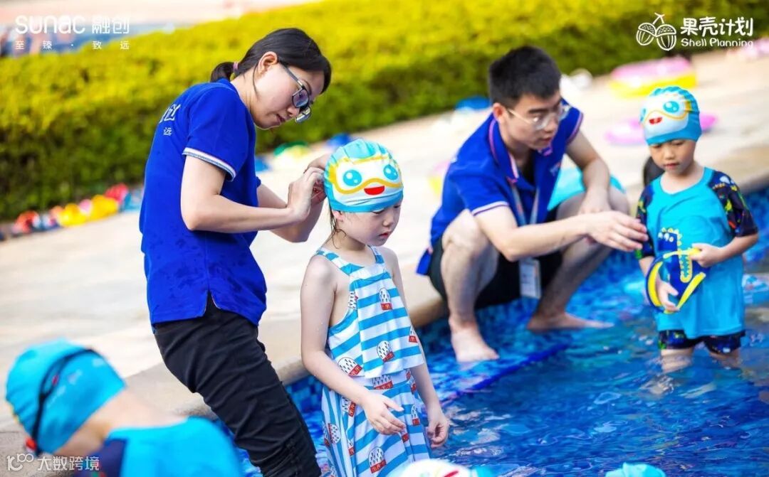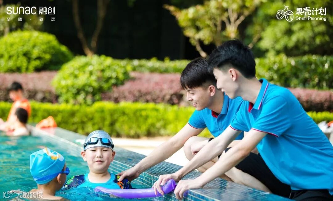 下水前,工作人员们细心检查着小果壳们的泳帽是否戴紧、泳镜是否扣牢;当小果壳们游累了在岸边撒娇时,他们也是最好的聆听者;想玩举高高时,瞧,教练的帅气托举,实力宠爱小果壳们!