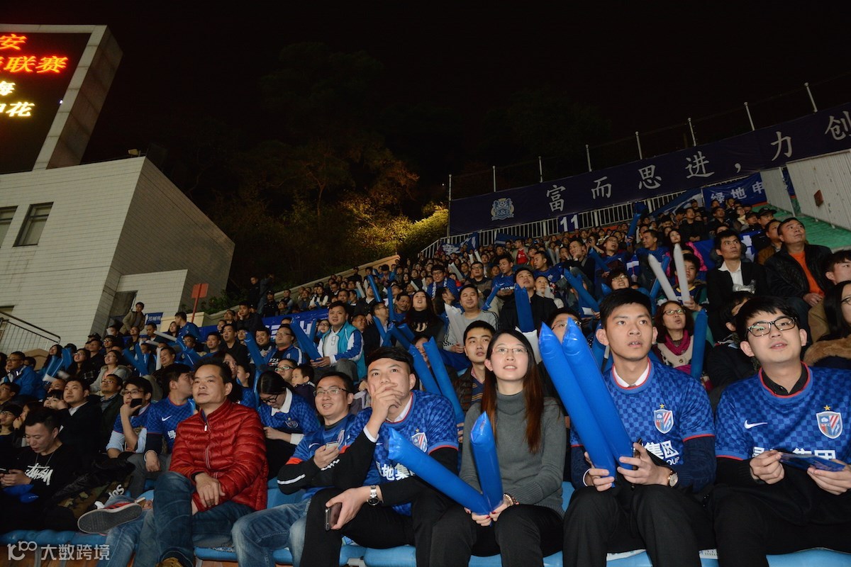 绿地申花球迷热情高涨,歌舞声一直萦绕着整个越秀山体育场。