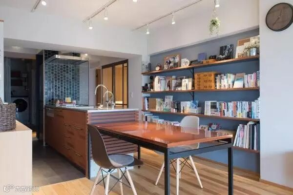 厨房与餐厅选择并排摆放,从餐厅到厨房的动线为一条直线。饭后收拾碗筷,立即就能缩短路线。