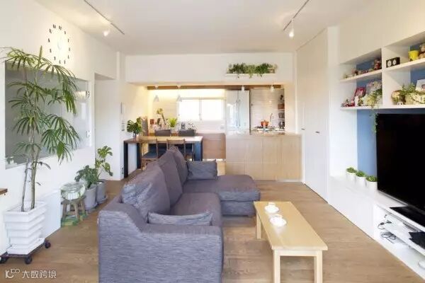 如果家里没有双阳台的配置,你可以采用一个非常简单的方式达到双阳台效果:在沙发背后和墙面留出一条间隙作为家务通道,将家务路线设置为经过客厅边缘。这样一来保证了休闲区域的完整性,让家人放松身心无妨碍又能做家务。