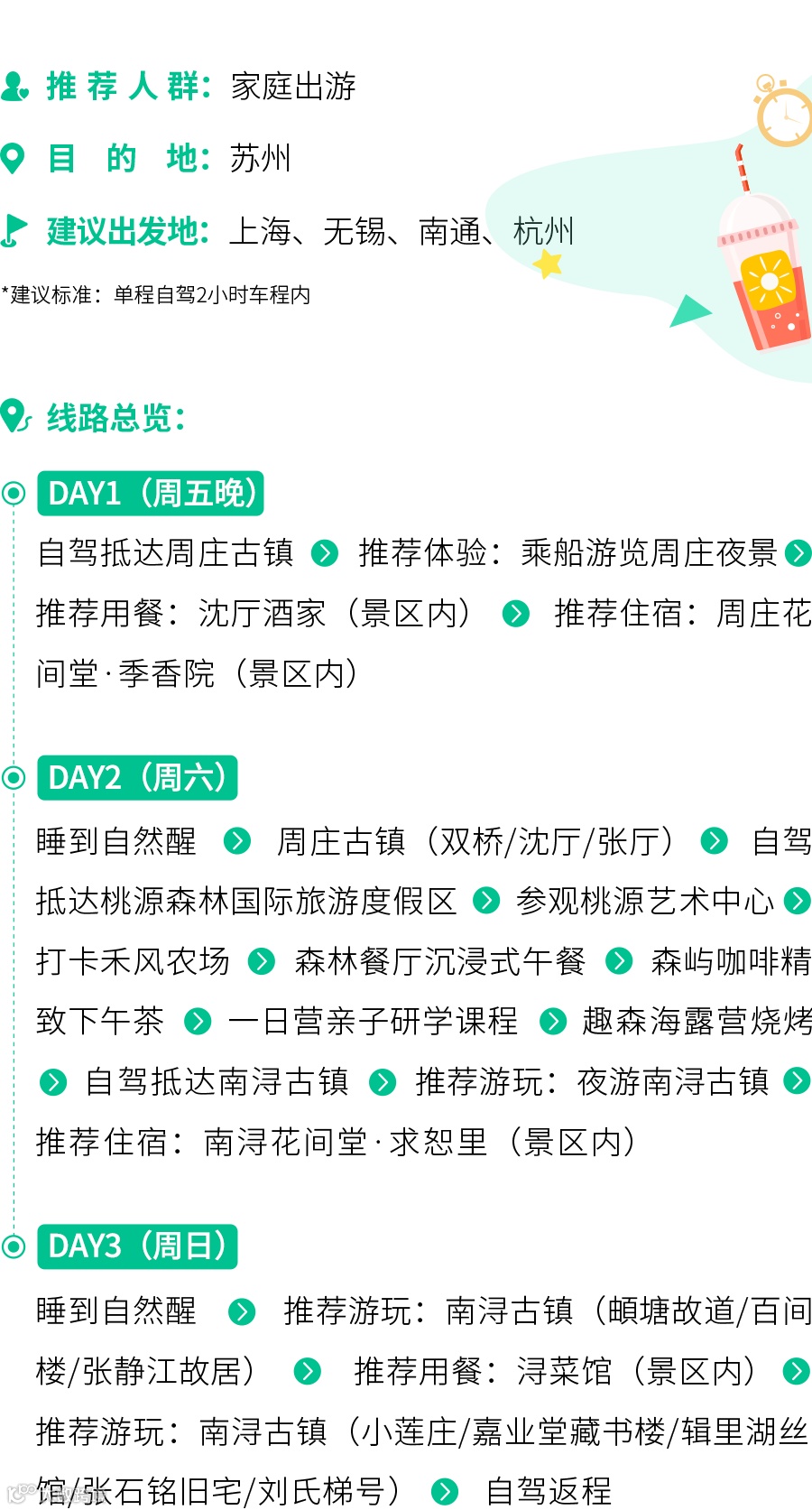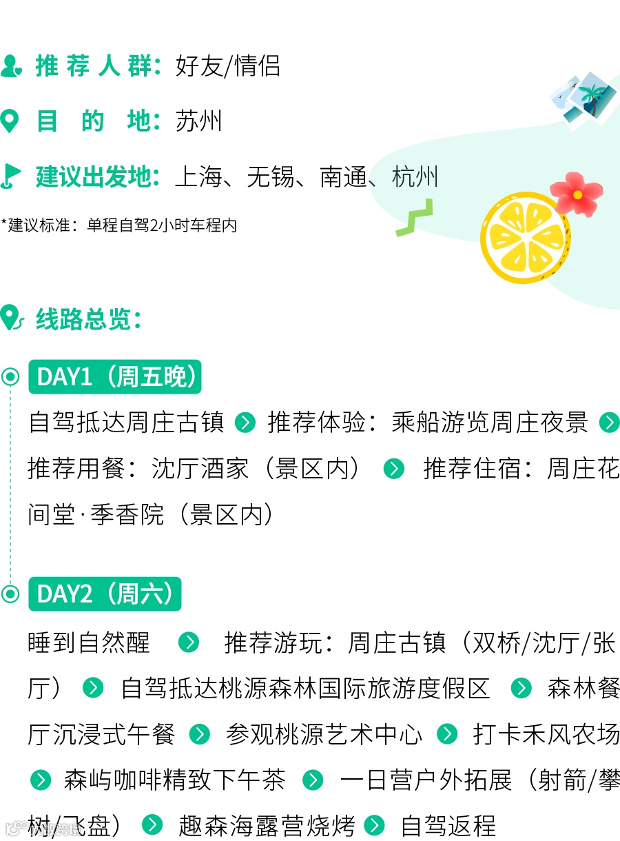 1、以上度假线路攻略,全部体验内容仅为出游建议,不作任何要约或承诺,无统一出游组织,您可根据自己的家庭需求及喜好,自由安排度假行程;