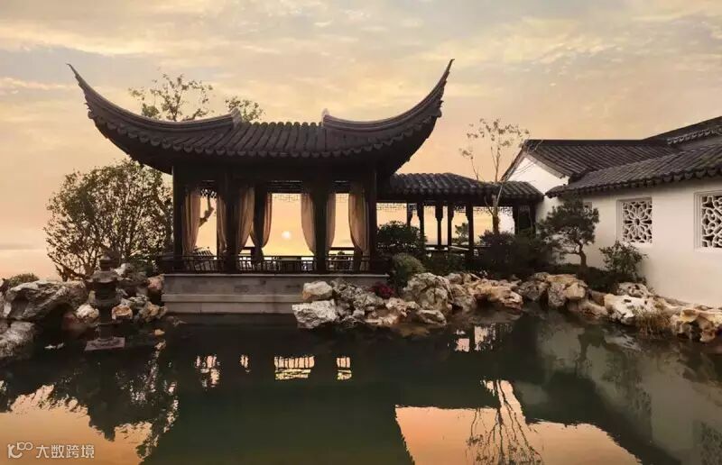 融创•苏州桃花源三期,位于桃花源“宝靴”内部,以阔绰中合院为主,公共空间景观层次更为丰富,水巷最宽处达到10米,巷道最宽处达到6米,公共区域根据不同主题植入相应景观小品。整体相对独立幽静,以0.577超低密度成为桃花源中式园林国宝之冠。更有封藏4年的一座10亿家族组团,以沿湖大宅家族形制,占据桃花源最顶级湖景,成就千年望族生活规制。