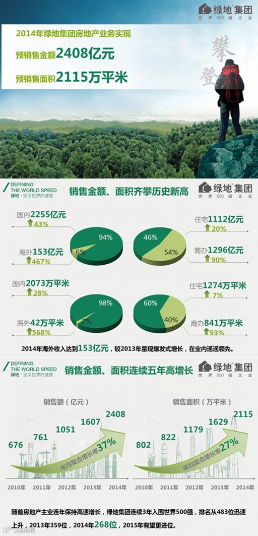 导读:在刚刚过去的2014年,绿地集团业绩在销售额和销售面积上双双夺冠,傲视群雄成为行业老大,问鼎全球地产王冠!今