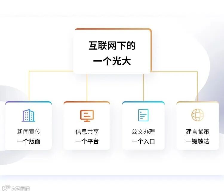 光大内网覆盖集团总部和境内外13家一级企业,集应用办公、新闻宣传、经营管理、建言献策于一体,实现了新闻宣传一个版面、信息共享一个平台、公文办理一个入口,建言献策一键触达。