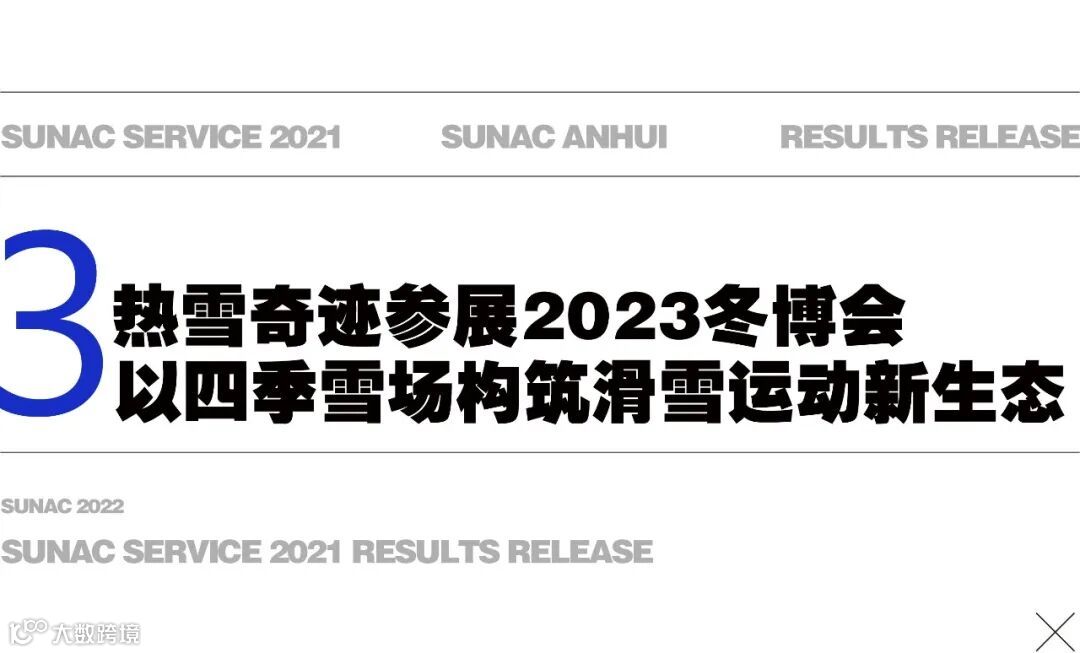 日前,2023国际冬季运动(北京)博览会在北京举行,该盛会吸引了全球500余家企业品牌参展,展示国内外先进的冰雪运动产品和技术。其中,作为全球领先的滑雪运动、教育、娱乐新消费场景全链条运营服务商之一,热雪奇迹备受各方关注,此次亮相冬博会,热雪奇迹将室内雪场全场景“搬”到展馆现场,并带来超震撼的室内雪场“阵列”,多元展示滑雪运动的独特魅力。据悉,热雪奇迹是此次冬博会全球产业联盟室内雪场发起单位,旗下8个已开业室内雪场全部入选年度雪场TOP20,树立行业新标杆。雪上中国梦,奇迹正发生,热雪奇迹未来将继续致力于推动滑雪全场景、多业态融合营造,助力产业扩容提质,促进冰雪体育消费振兴,共建滑雪运动发展新生态。