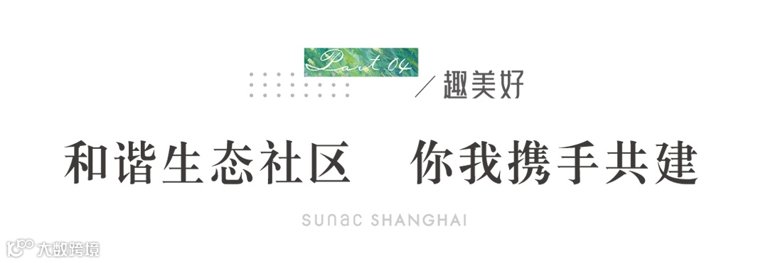 契合上海市“生态之城”的城市目标,积极整合社区资源、共建美好生态,是上海融创趣玩吧的生态使命。融创也将继续践行绿色环保理念,从社区生态的多方面着手,逐步引导业主自发参与共建,以理想人居的形态,打造品质感和幸福感可持续的美好生态共建的新型社区。