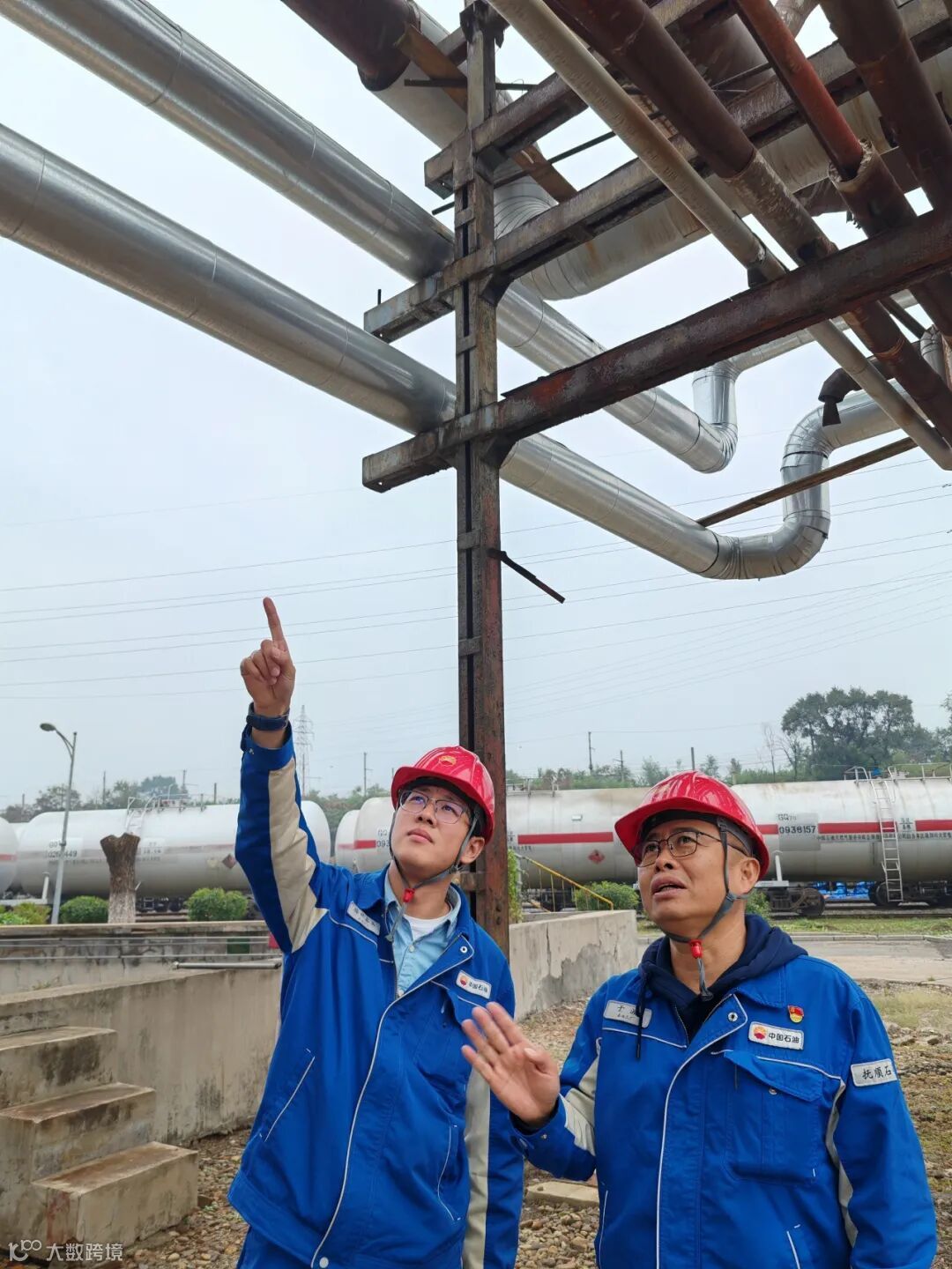 施工方案敲定后,党员们甘愿变身操作工,挂上安全带确认流程,和施工人员一起连接蒸汽线。接着,他们又变身“守卫者”和“运输员”,搭建好防飞溅措施,再联系运输罐车,把残油运送到1002号储罐里,完成一整套“有计划、有步骤、有措施”的监管流程,确保整个施工过程“绿色环保、滴油不落”。