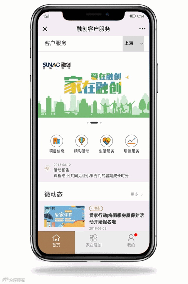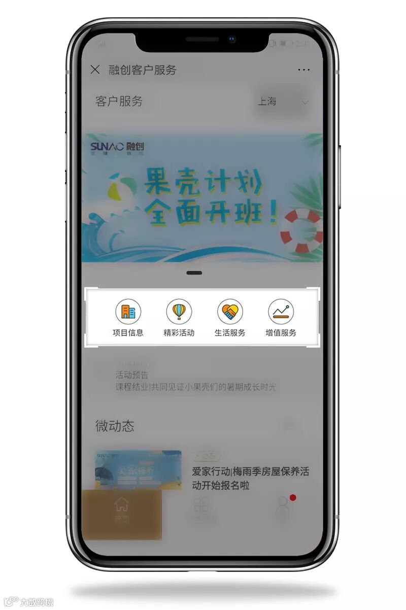 此次融创上海区域客户服务官微的全面改版升级,在为业主描摹出理想社区生活的同时,也摒弃了传统菜单,重新定义地产服务行业的平台功能新模式。