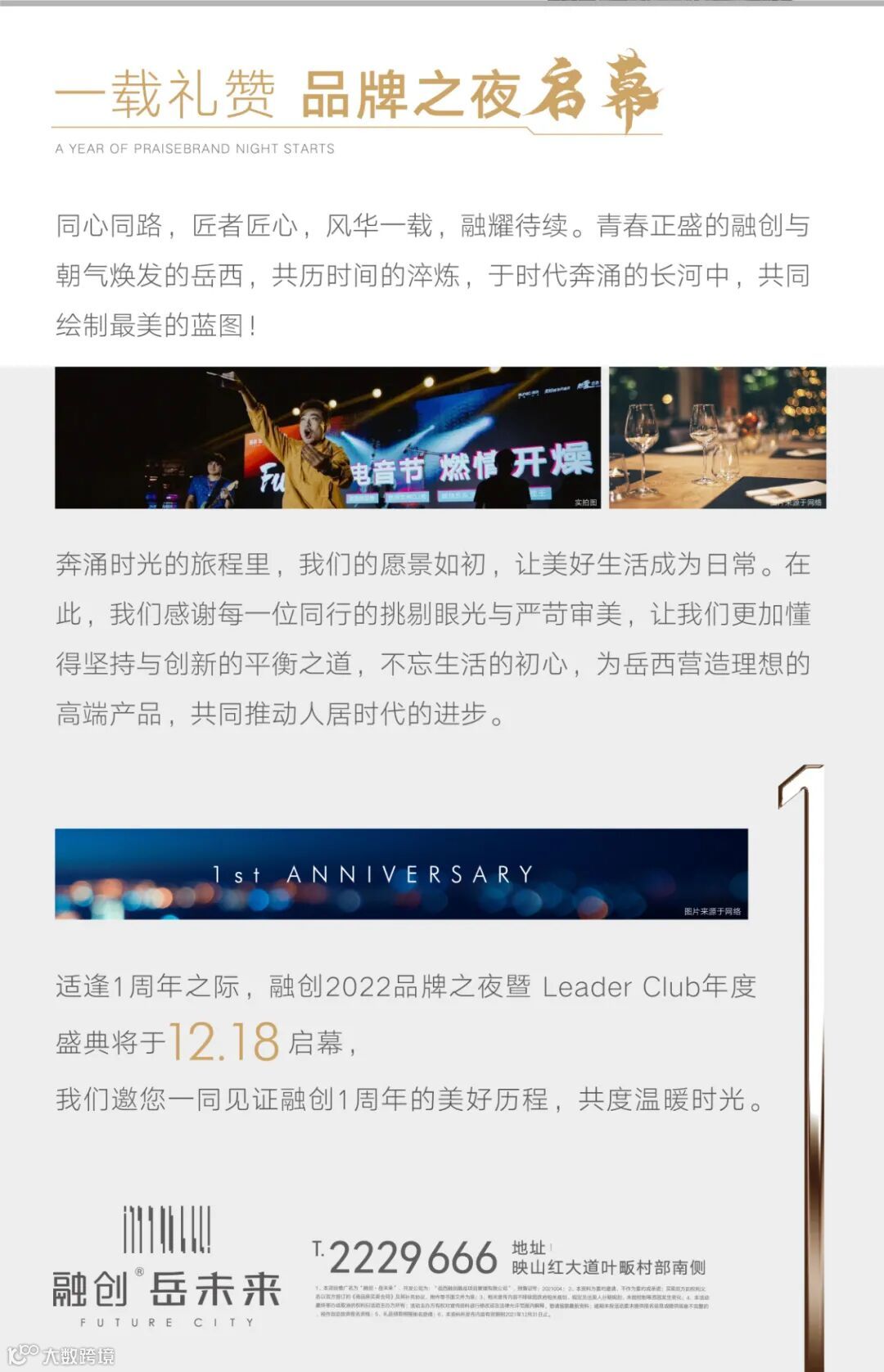 1、本项目推广名为“融创·岳未来”,开发公司为:“岳西融创融岳项目管理有限公司”,预售证号:2021004;2、本资料为要约邀请,不作为要约或承诺;买卖双方的权利义务以双方签订的《商品房买卖合同》及其补充协议、附件等书面文件为准;3、相关宣传内容不排除因政府相关规划、规定及出卖人分期规划、未能控制等原因发生变化;4、本活动最终举办或取消的权利归活动主办方所有;活动主办方有权对宣传资料进行修改或在法律允许范围内解释,敬请留意最新资料;逾期未按活动要求提供报名信息或提供信息不完整的,视作自动放弃报名资格;5、约2.5亿、1.2亿、1000 位数据来源于案场统计6、本宣传资料对商业的具体业态、开业时间等仅作介绍,不代表出卖人对此作出要约或承诺,具体以经营者实际经营为准;6、本资料对项目与周边环境、交通、公共设施的地理关系示意,旨在协助提供相关信息,不意味着公司对此作出任何承诺;7、“四馆一中心”建设信息来源于http://www.yuexi.gov.cn/public/2000000111/2006687791.html, 仅供参考;8、高铁站规划信息来源于http://www.yuexi.gov.cn/public/2000000201/2016766751.html,仅供参考;9、本资料所发布内容有效期到年12月18日止。