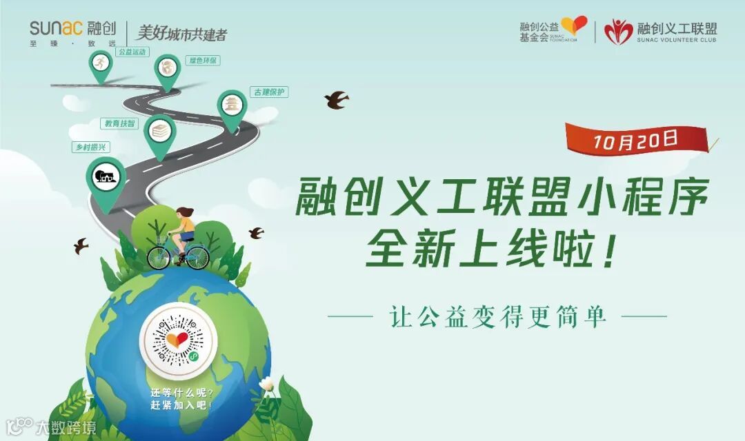 近日,融创义工联盟公益小程序全新上线,围绕乡村振兴、教育扶智、古建保护、绿色环保、公益运动等领域开展公益行动。融创义工联盟,是旨在整合公益项目及资源,为融创全体员工、融创业主、合作伙伴提供参与公益活动和社会志愿服务的专业、便捷的义工平台。融创义工联盟小程序的全新上线,方便融创义工更方便地参与、发起社会公益活动,同时动员更多社会力量投身公益事业,提高公益活动的渗透率和参与度,为全社会创造长远的价值。