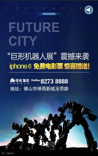 绿地集团,承载着光荣与梦想来到禅西,7月27日佛山绿地·未来城营销中心将盛大开放,同期将举行“变形机器人展”,超10米高巨型机器人将酷炫亮相,与您零距离接触,欢迎大家莅临观赏。
