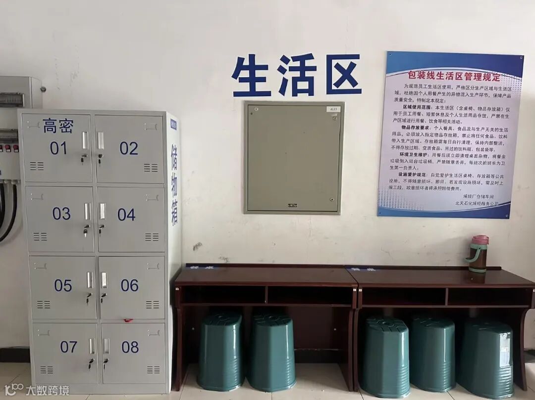 “生产区”主要集中于十条包装线的包装运作,“生活区”则设立在包装间走廊外,车间为包装线员工准备了储物箱、桌椅、板凳等方便工作之余休息使用的生活用品。两个区域的划分,不仅大大提高了包装效率,而且规范了固体库房包装间的日常管理,有效规避杂物落入包装袋内,避免造成质量问题。