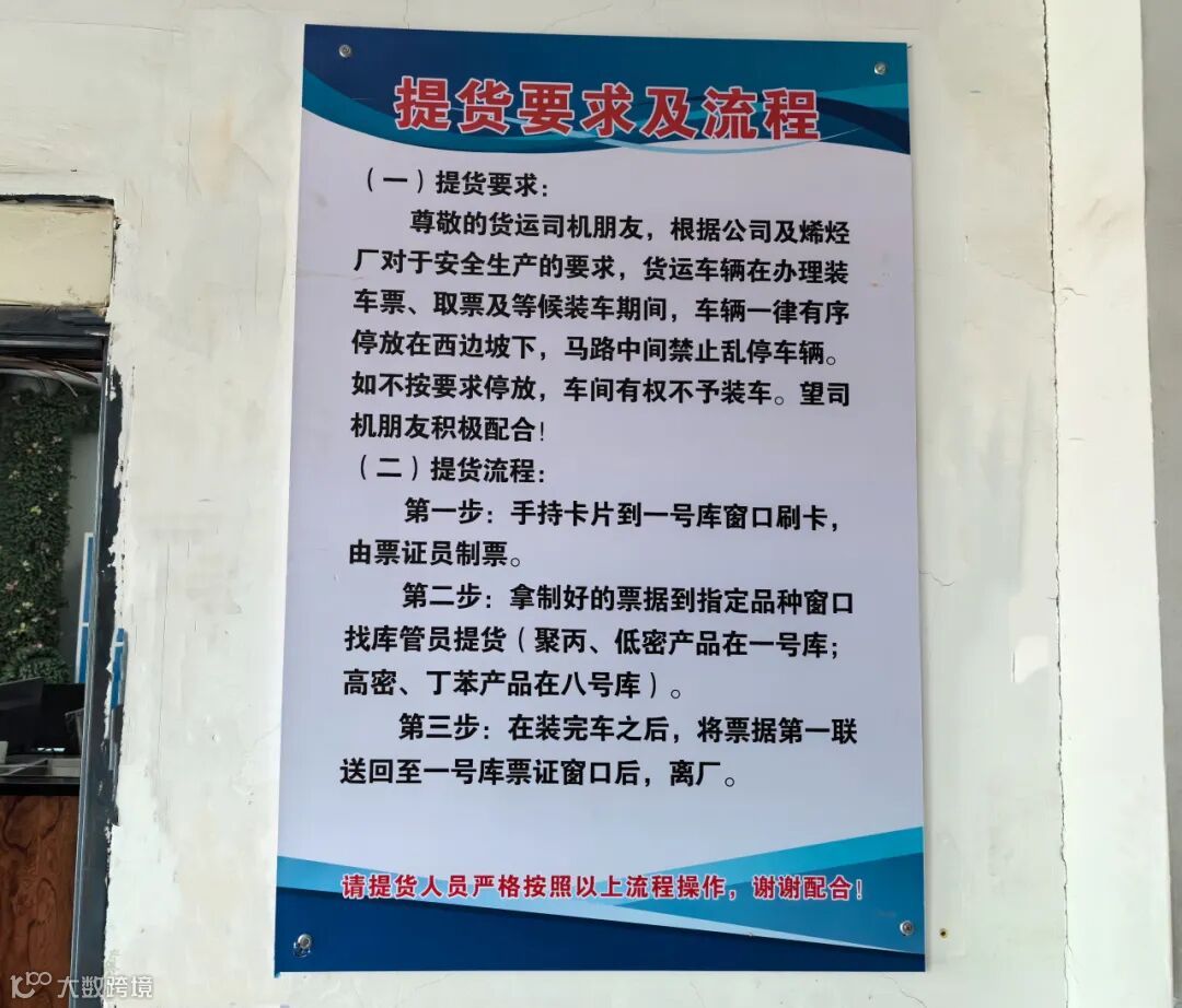 烯烃厂仓储装置作为抚顺石化公司最大对外窗口单位,员工以良好的服务态度,做好外来司机提货工作。在一号库外设立了提货流程指导牌以及禁烟警示牌,方便提货司机进一步了解流程及提货规定,更高效率的完成提货工作。