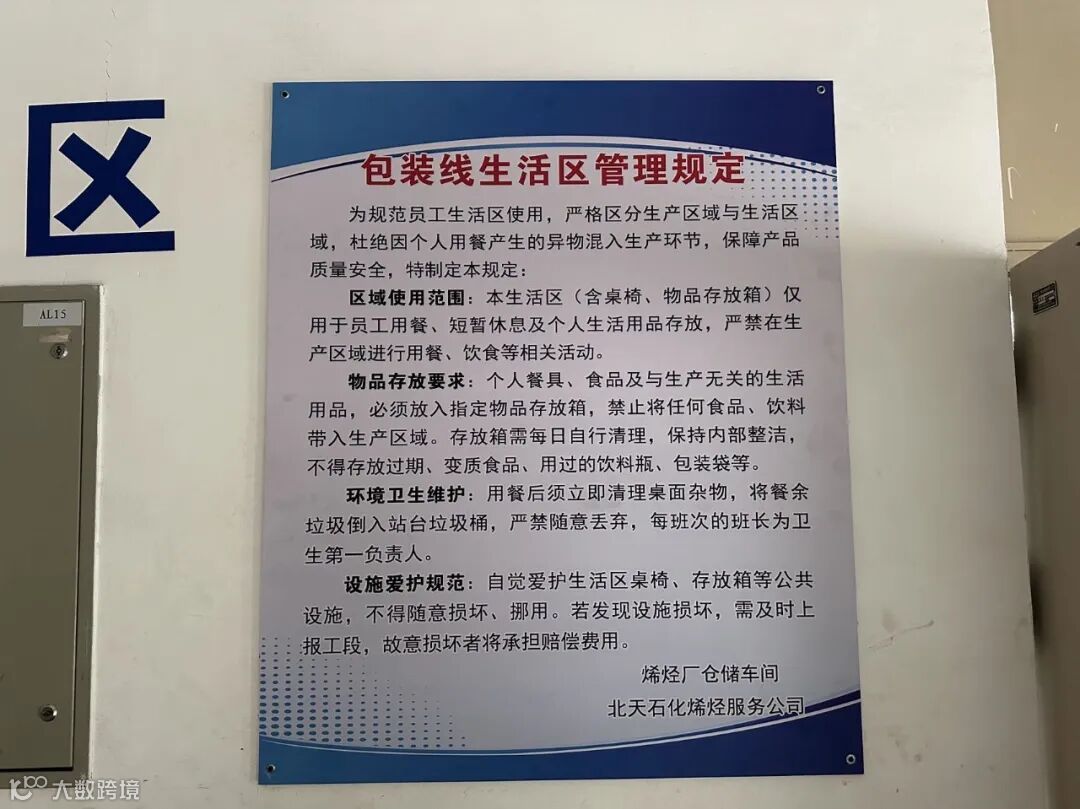 为加强精细化管理,营造高质量生产与员工幸福感并存的工作环境。仓储装置将聚丙烯、低密度聚乙烯、高密度聚乙烯三个包装间分别设立“生产区”“生活区”两个主体区域。