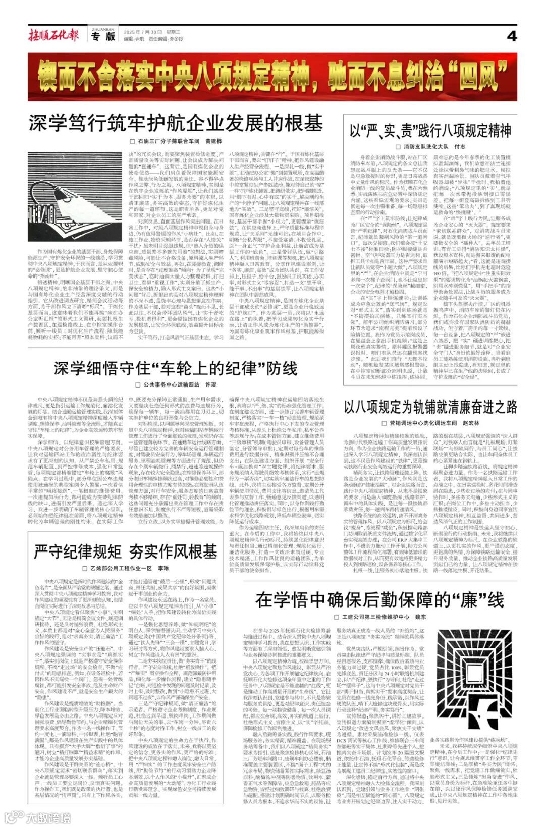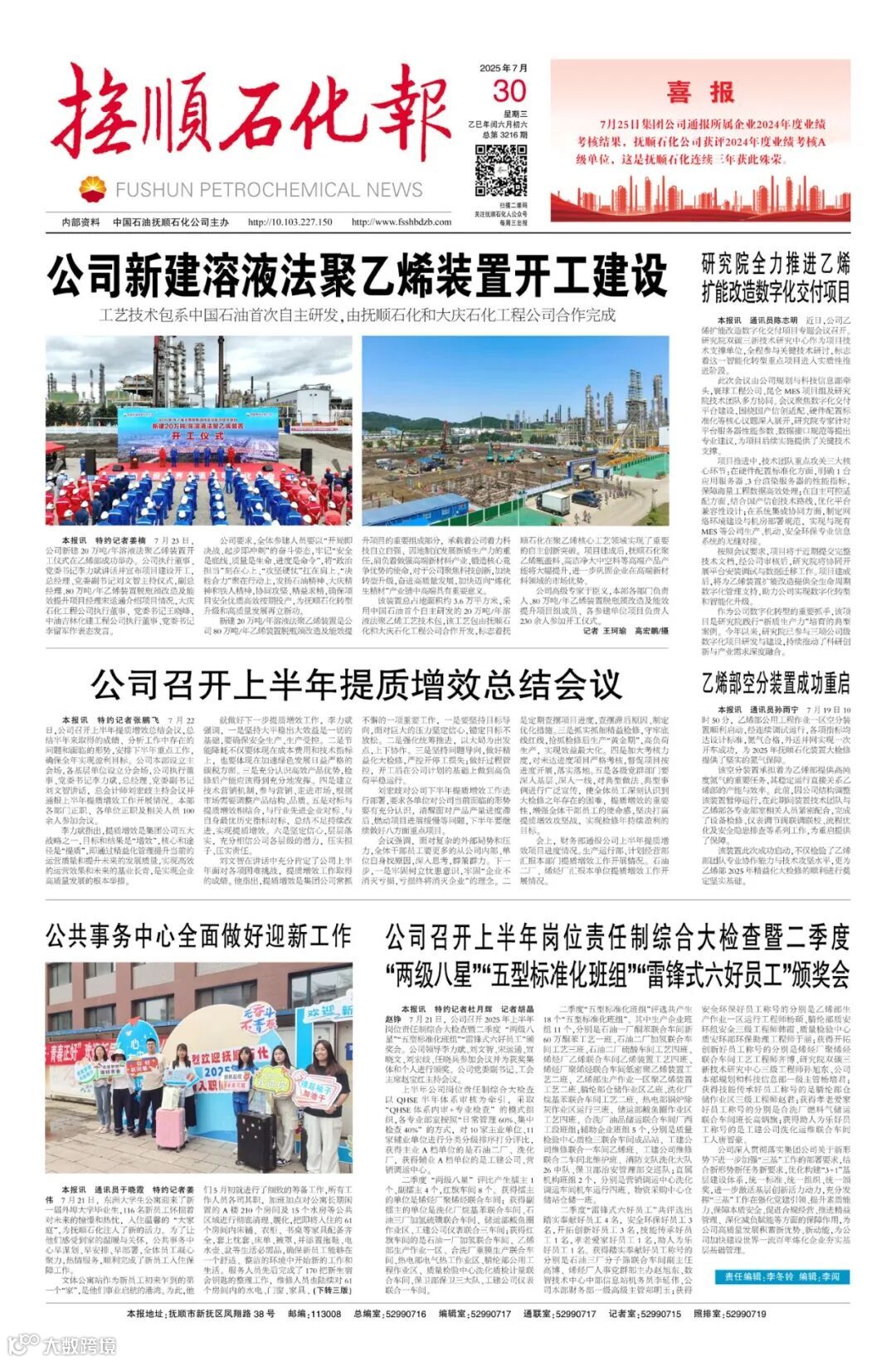 《抚顺石化报》2025年7月30日 抚顺石化人