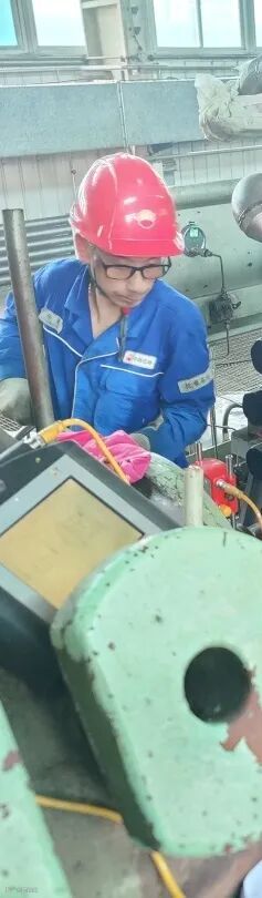 “这个皮带已经出现裂纹了,必须更换。”维修人员将手中的皮带展示给属地车间设备员,对设备损坏情况一同进行确认。这是东部维护班在空冷风机平台检修作业中的一幕。