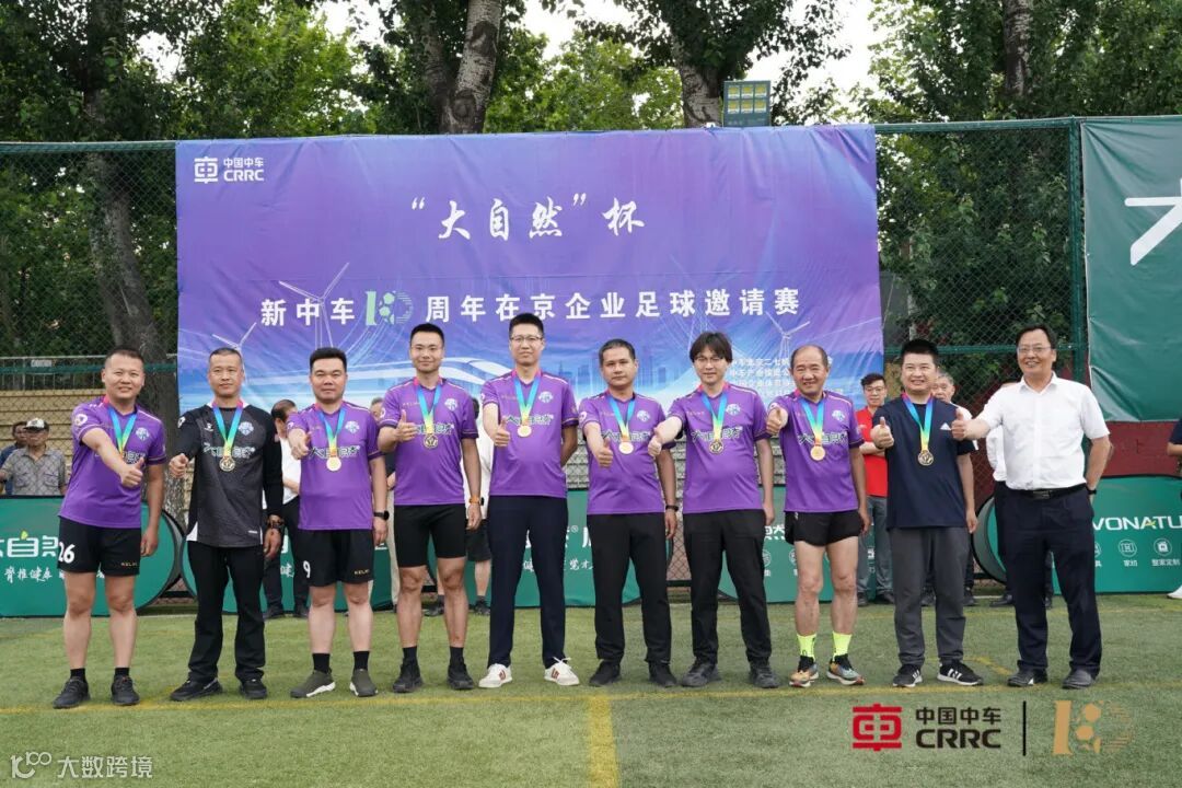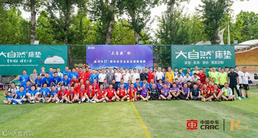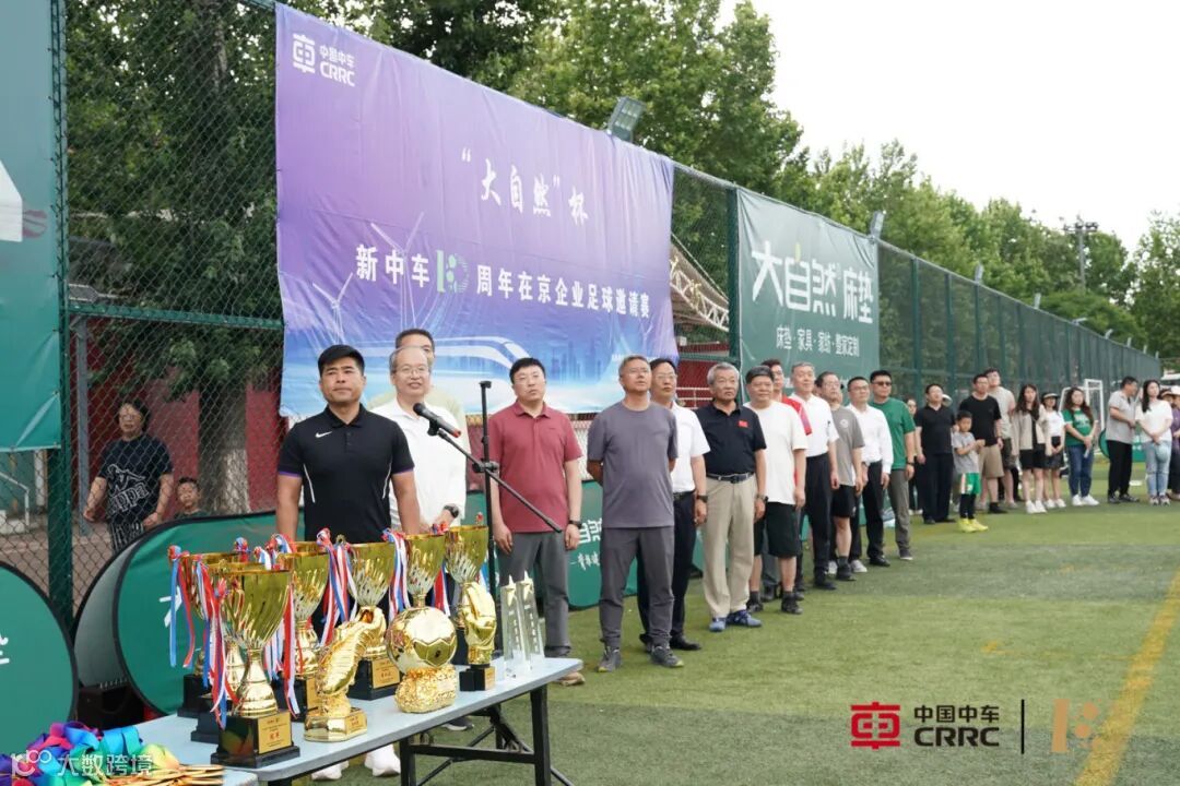6月7日,中车北京二七机车有限公司足球场上,激情与欢呼汇聚成海。由中车旗下健康品牌大自然床垫全程冠名支持的“大自然”杯新中车10周年在京企业足球邀请赛在历经两个月的激烈角逐后,迎来了巅峰对决与盛大闭幕。中国中车副总裁余卫平、中国企业体育协会代理主席戴璐强、中国中车首席科学家张新宁、中国中车工会副主席刘智、中国中车公司办公室(党委办公室)主任梁军、中车产投党委书记、董事长刘溥及其他在京企业领导亲临现场,与运动员、工作人员及观众共同见证这一荣耀时刻。