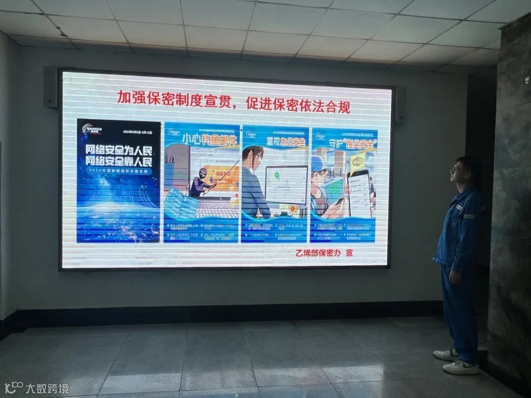 乙烯部保密办通过“线上+线下”相结合的方式,开展全方位宣传。线上,通过LED屏播放宣传标语、“守护指尖安全”“小心钓鱼邮件”保密知识;组织部内高管及以下管理人员参加中油“e”学“双周”保密宣传答题活动,共计100余人参与答题,向广大干部员工传达“保守秘密,人人有责”的理念。