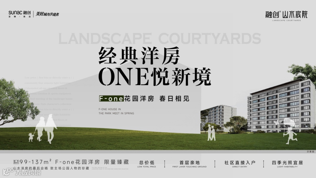 山水宸院以经典F-one之名,全面上新首层花园洋房,更亲地的位置,更能获得洋房可感、可知、可游、可玩的居住体验。社区直接入户,出门即享宅间花园及互动空间;家与大地无界,延伸客厅、书房等空间的尺度,环景视野,纵览天地入怀。以“低”的姿态演绎“高”的优雅,限量争藏,最后的山水经典洋房。