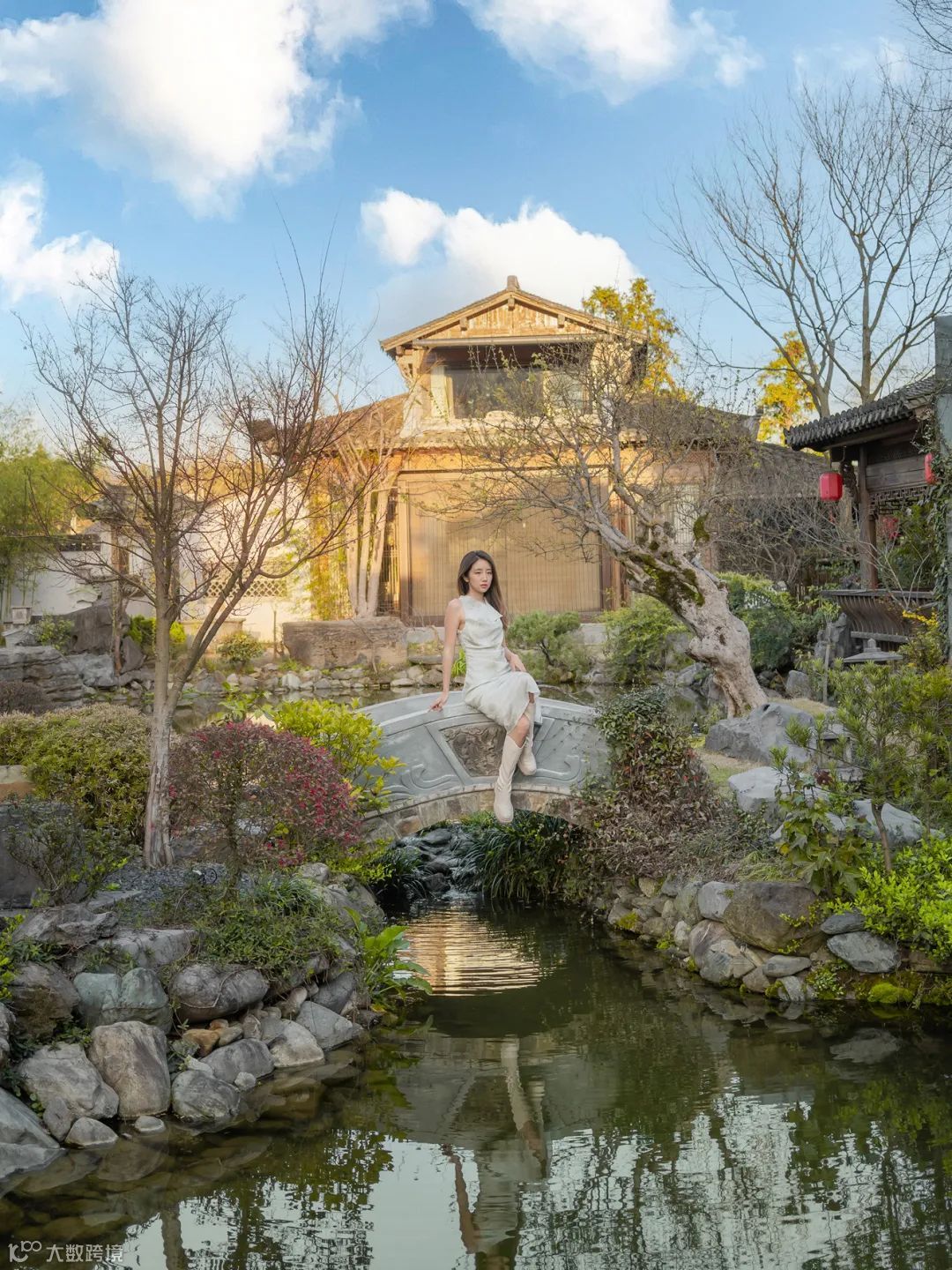 庭院中的水景是我最喜欢的部分,坐在摇橹船上,静静品味皖南独特的建筑与住宅。我使用尼康Z fc搭配尼克尔 Z 26mm f/2.8拍摄,镜头视角和FX格式下39mm的视角相同,很接近标准视角,近似于人眼的观察习惯,更有利于表现人物的状态。