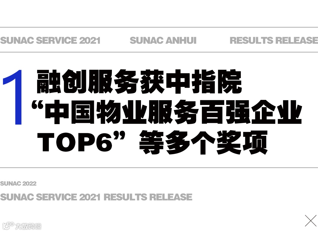举行,融创服务在本次大会中获得“中国物业服务百强企业TOP6”、“中国物业服务年度社会责任感企业TOP3”、“中国物业服务百强满意度领先企业TOP3”、“中国高端物业服务领先企业TOP2”、“中国物业服务多种经营优秀企业TOP3”、“中国物业管理行业最佳雇主TOP3”、“中国物业科技赋能领先企业TOP2”、“中国智慧城市服务领先企业TOP3”、“中国物业服务百强企业服务规模TOP4”、“中国物业管理行业市场化运营领先企业TOP3”等多项荣誉。同时,融创服务持续深耕核心城市,多个主要城市斩获“物业服务优秀企业”荣誉,其中包括: