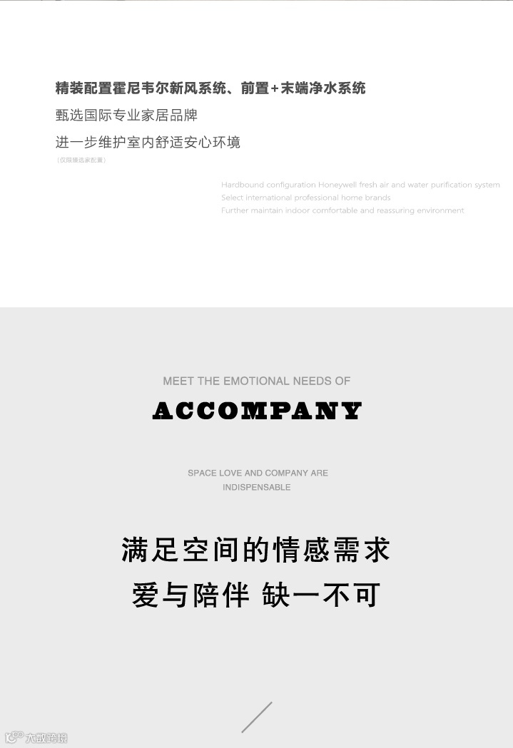 4、资料中涉及的各类设备、材料品牌仅供参考,以实际交付为准;本宣传资料中,“霍尼韦尔”配置属于“【臻选家】”部分,指在该商品房已包含的基础装修之上所提供的服务,宣传资料中展示内容仅供参考,具体内容以签署的相关协议约定为准。“【臻选家】”需整体购买,不可拆分选择,由买受人基于自愿购买。