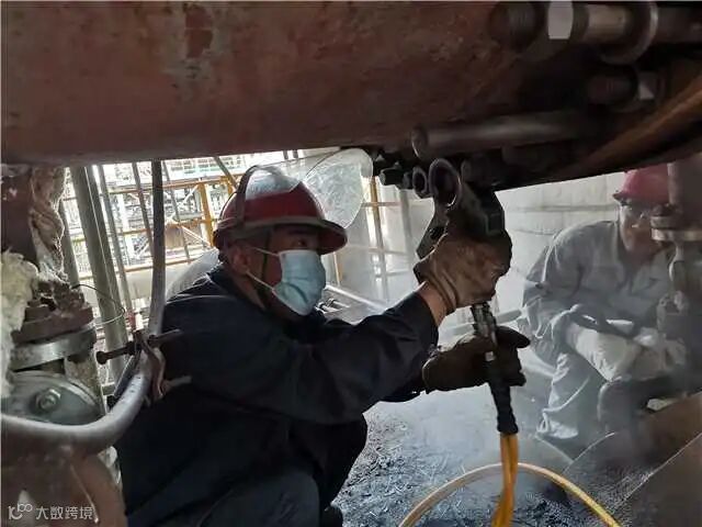此次抢修需要搭设大量脚手架。这就为了不影响主体工程施工,架子工和清焦工倒班轮换,24小时全程配合。