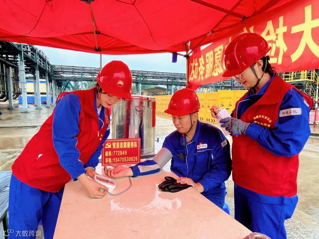 生产作业一区第一党支部聚焦后勤保障,女工党员主动承担工作服清洗缝补工作,细密的针脚交织着浸湿的衣物,织就党群连心纽带。生产作业一区第二党支部关切员工健康,组织青年党员为检修人员测量血压,准确掌握员工健康状况,合理安排工作任务,避免过度疲劳,并定期检查急救箱内防暑药品配备情况,切实满足参检人员所需所急。