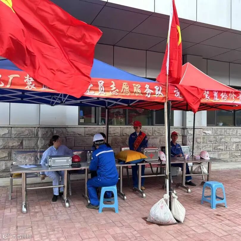 该厂组织45名机关党员和青年骨干成立党员、青年、基层单位3支志愿服务队,在烷基苯联合车间等重点区域设置现场志愿服务站,提供针线盒、药品、饮品等应急物品,并开展“送清凉”活动,将西瓜、雪糕送到参检员工手中。厂工会积极协调相关部门调整检修期间餐食供应,为员工提供饺子、盖浇饭等多种类餐食。除此之外,青年检修服务站还配备了常用药箱与血压计等物品,每日厂卫生所派专人盯守在服务站,保障员工身体健康。