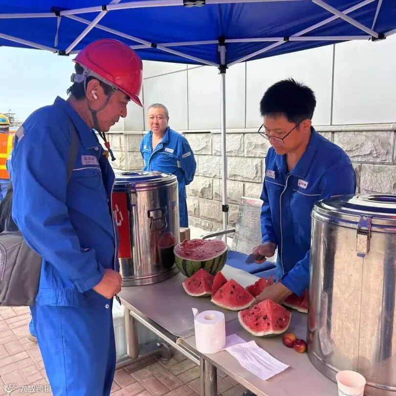 “西瓜吃得真解渴,为炎炎夏日增添了一丝凉意,干活儿更有劲头了。”在装置检修现场,大伙儿接过清凉甘甜的西瓜,吃到嘴里,脸上洋溢着欣喜的笑容,阵阵暖意直抵心间。