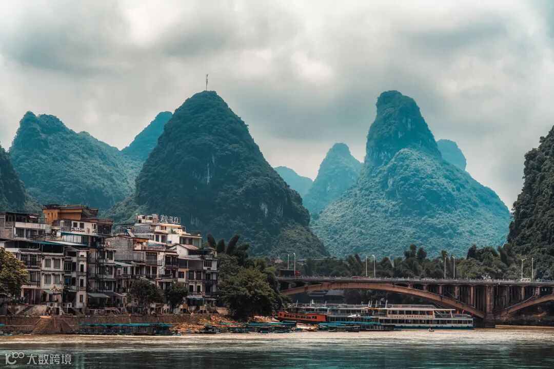 都说桂林⼭⽔甲天下,在⼭川地貌上确实有它独特的⻛貌,⽽阳朔的城市也都依⼭⽽建伴⽔⽽居。