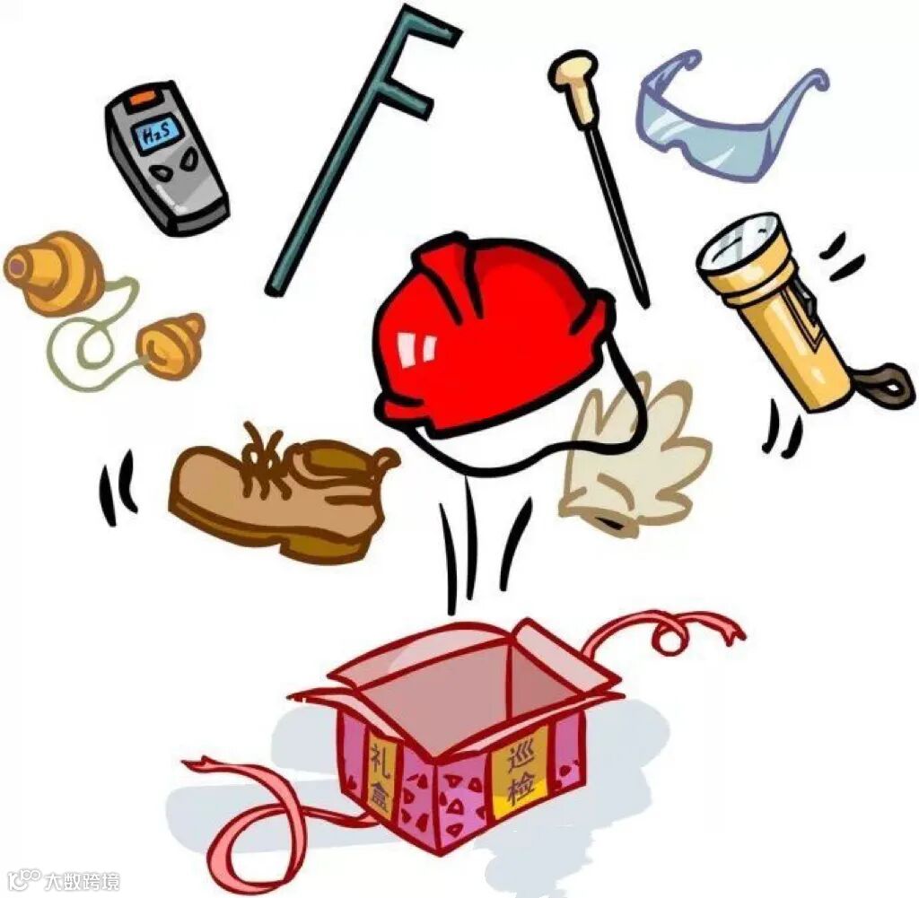 对讲机、耳塞、安全帽、护目镜、防砸鞋等