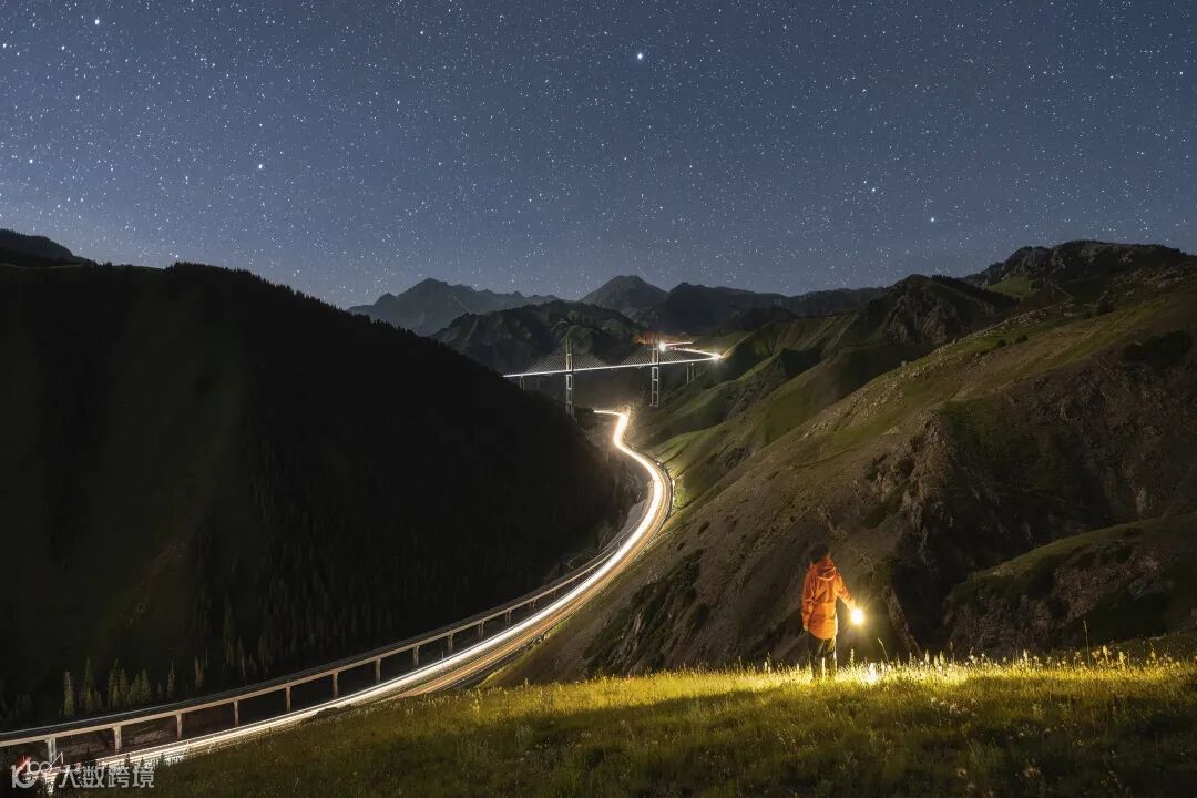 这张拍摄于新疆果子沟大桥的照片是采用单张曝光300秒拍摄而成的,尼康Z 7Ⅱ在M模式下,最慢快门速度约900秒,因此为单张长曝光拍摄提供了技术保障,给了摄影师更多创作的机会。这隐秘在深山中的公路和大桥在暗夜的星空中,通过长曝光的方式被车流点缀成了一道靓丽蜿蜒的曲线。