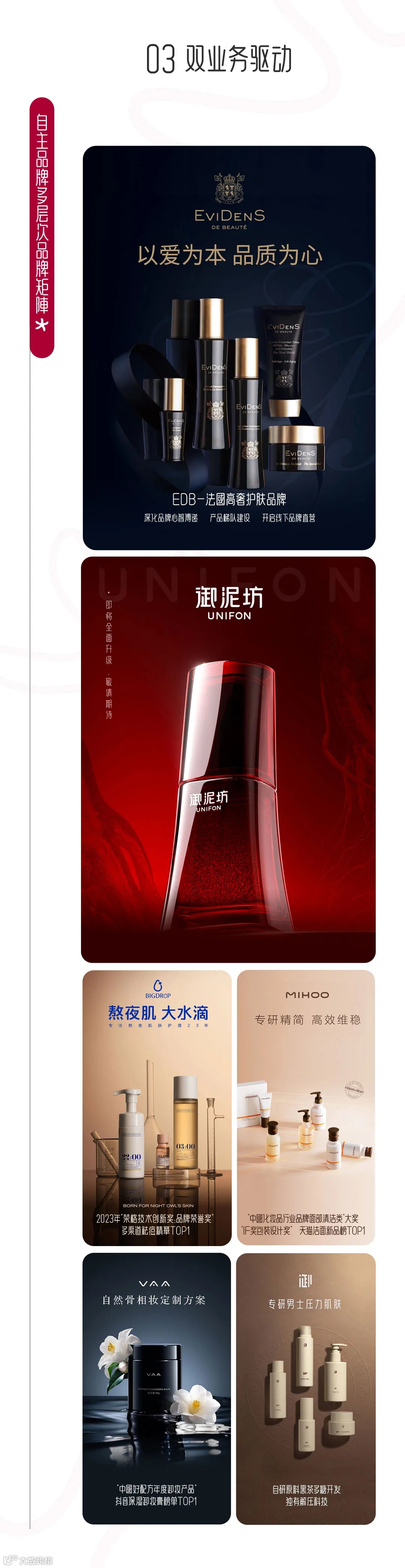 现在我们说更重要的,那就是国内第一美妆高奢品牌正在崛起,2023年,高端品牌伊菲丹挑起大梁。