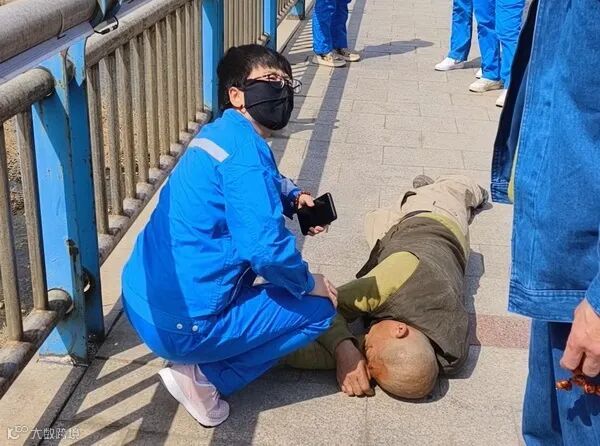 4月7日12时许,在质量检验中心附近的搭连桥上,一名路人突然发病瘫倒在地,刚刚路过的群众被吓得大叫。此时,正巧路过的质量检验中心本部员工李金波、牛壮、张冰、朱鹏程、邓浩月、张硕立即过来查看情况。