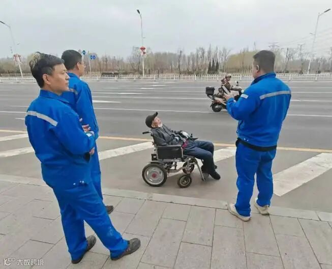 机敏的唐智豪迅速拨打了110,清晰报出:“丹东路洗化厂东南角交通岗,有位坐电动轮椅的老人迷路,疑似阿尔茨海默病患者。” 在等待民警的 20 分钟里,四人分工协作:张勇和何鑫轮流站在轮椅后方阻挡侧方来车,白亚峰递水安抚照顾老人,唐智豪举着手机在路口录制现场视频,方便警方快速定位。发现老人轮椅电量即将耗尽,他们合力将老人连人带车抬到路边树荫下,唐智豪脱下了工作服盖在老人腿上,以防老人受风着凉。