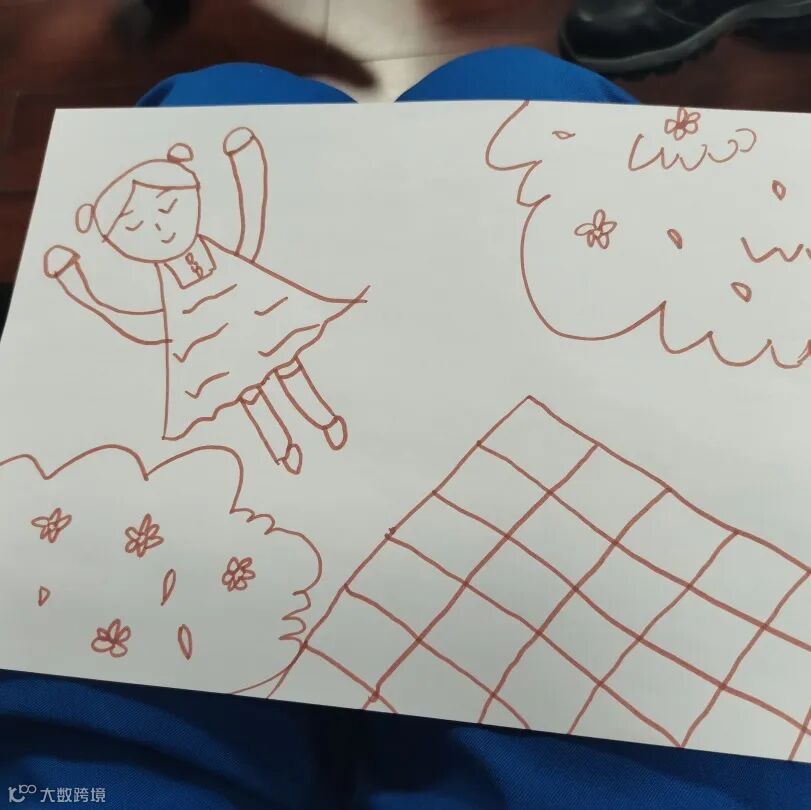“闭上眼睛,想象一下未来期待的美好生活,用画笔将美好生活画下来。”