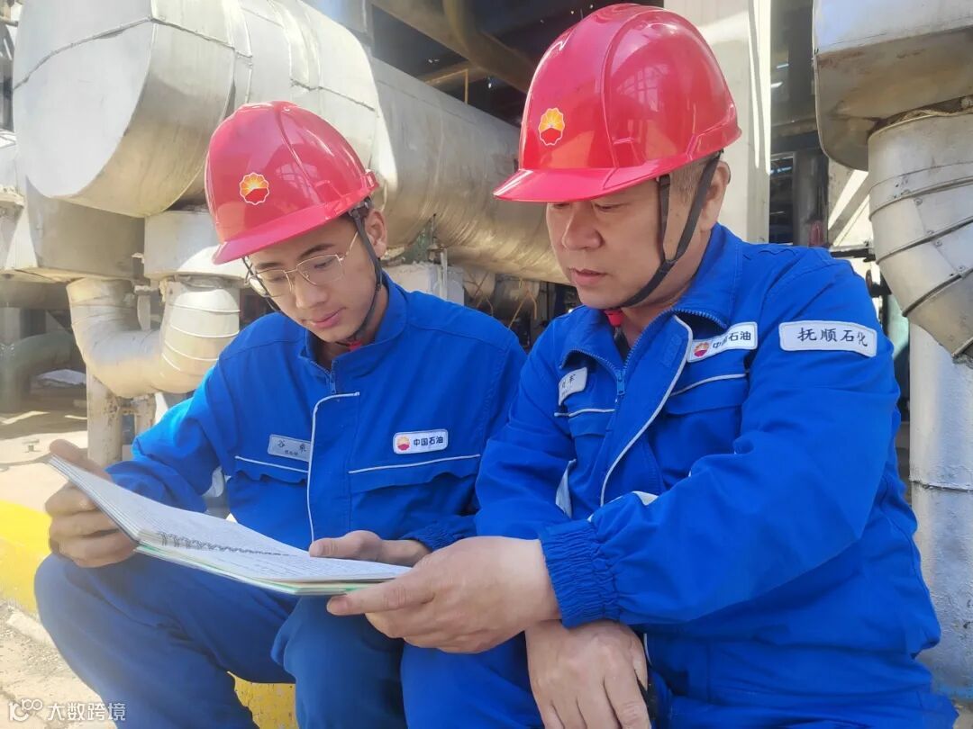 抚顺公司首席技师、曾获抚顺市五一劳动奖章、技术状元等殊荣的刘军;抚顺公司首席技师、曾获公司操作服务人员职业技能竞赛状元等荣誉的张明友,与腈纶部2023年入厂青年签订《师徒合同》。