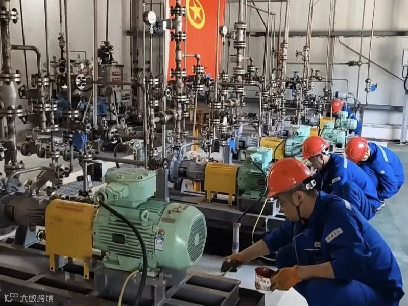 ▲ 腈纶部青年突击队到废水浓缩泵房进行地面以及机泵座的清理刷漆,给废水泵房换新颜。