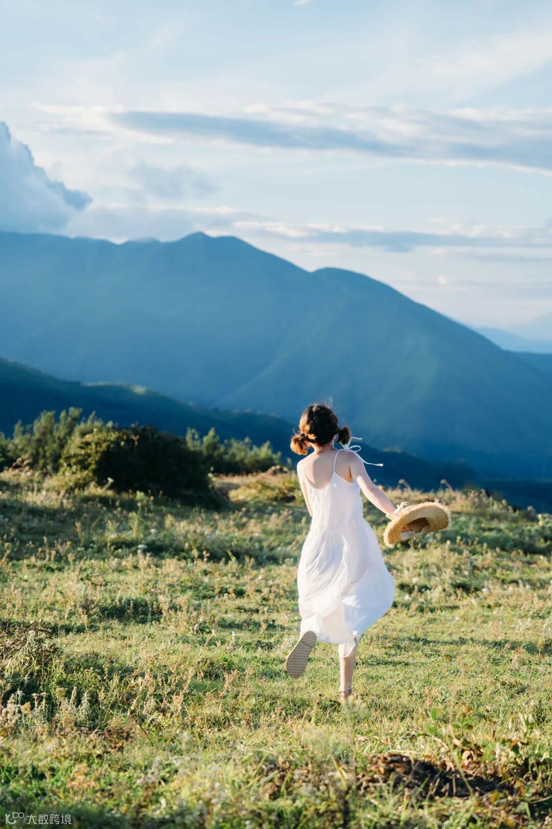随着人物飘动的裙摆,身后的栅栏,再到草地与山岭,一层一层的递进,营造的空间感,和与之带来的大自然的呼吸感,便随其而来了。
