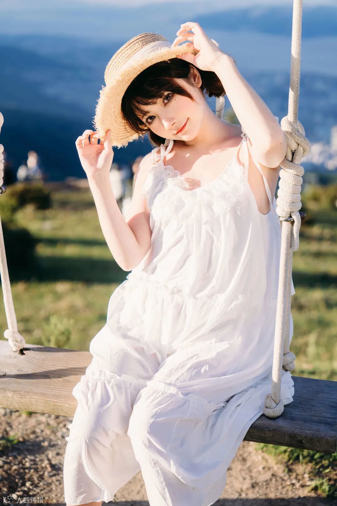 同样,通过与场景之中的秋千互动,与手上帽子的互动,和眼睛看镜头时俏皮的眼神互动,都是能让画面不显得单调乏味的关键。