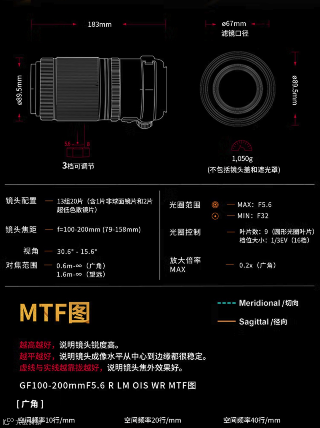 这支镜头覆盖的焦段范围很广 ,等效焦距从80mm至160mm,如果用上1.4×增倍镜,长焦端可以达到225mm。