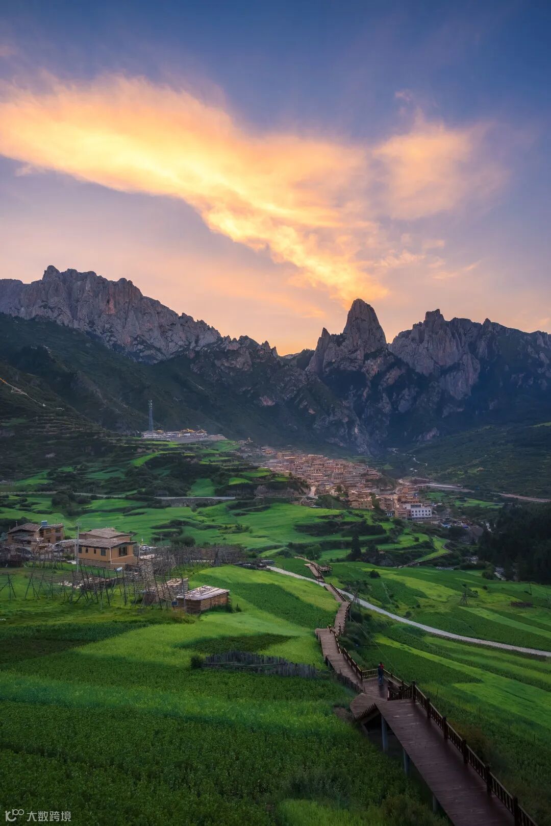 上图拍摄于扎尕那日出前夕,天空中热烈的火烧云与宁静的村庄农田形成了鲜明对比,翠绿的农田也展现了夏季该有的活力。本次旅行中,尼克尔 Z 24-200mm f/4-6.3 VR是我较常使用的一款镜头,因为它的焦段丰富且画质表现出色。镜头采用了包括2枚低色散(ED)镜片、1枚非球面低色散(ED)镜片、2枚非球面镜片等特殊镜片,让画面中农田、村庄、山峰与天空的远近层次都拥有锐利的成像,同时在暗角、虚化等方面的控制也达到了比较出色的表现。