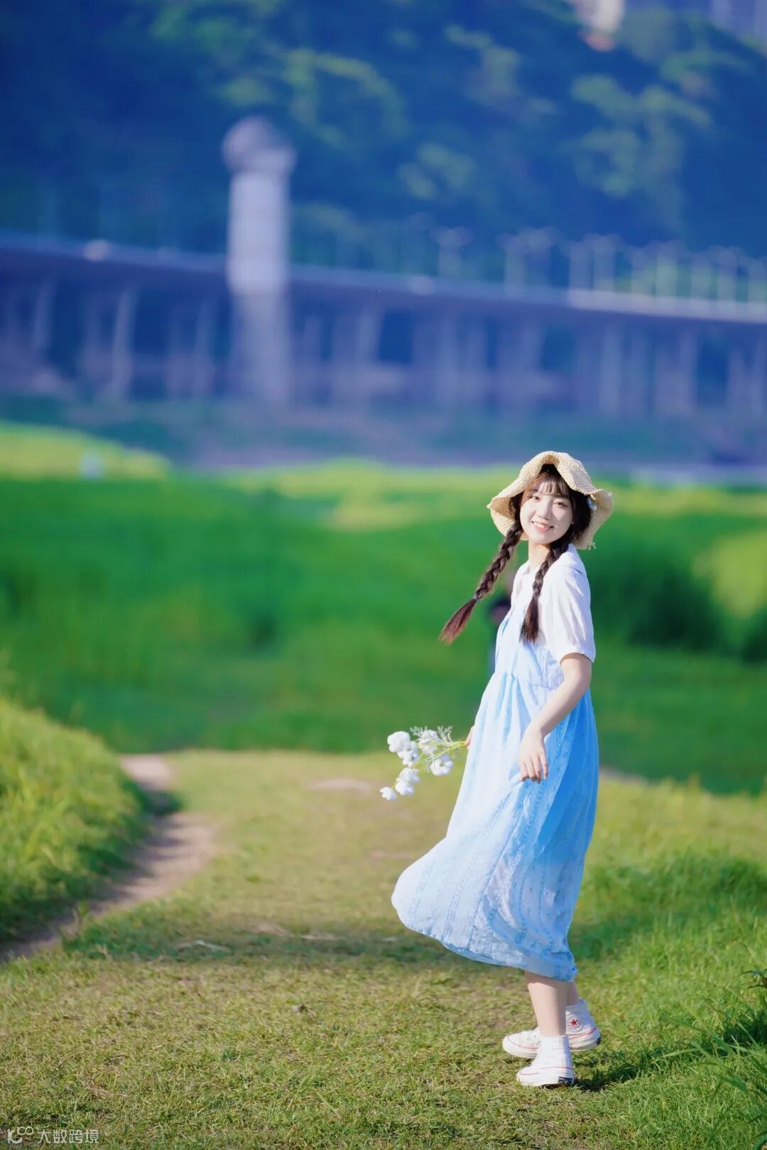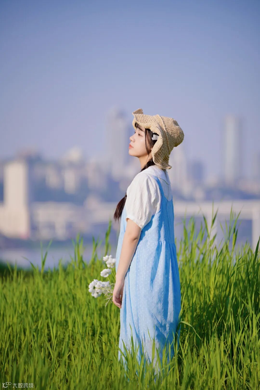 同时合理利用翻折屏,从低机位进行取景拍摄,把杂乱的草丛变成柔美的焦外前景,也让画面更具有层次感。