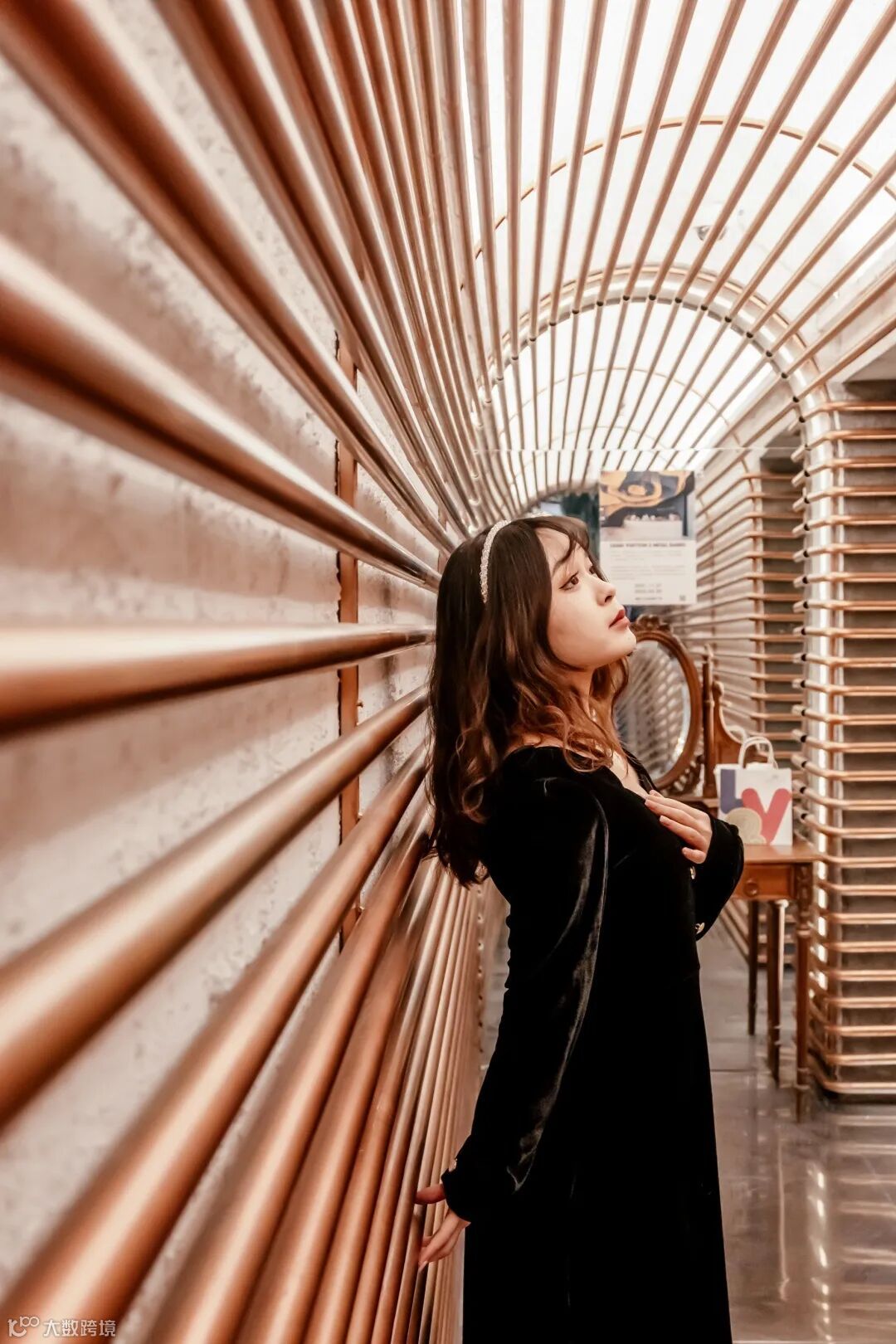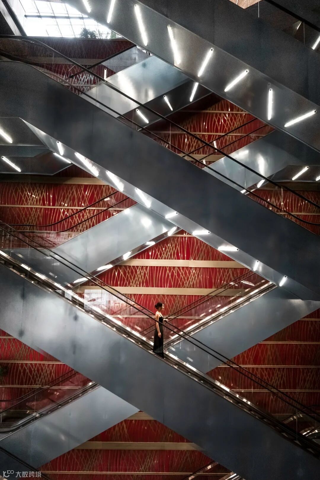 对称结构不仅体现在建筑结构中,也是经典的摄影构图方式,因其展示了和谐与极简的美感,所以只要合理地将人物置入其中就可以拍摄出一幅带有趣味性的照片。在上图的场景中,因环境中的天光、灯光与暗部形成了较大的光比反差,所以在曝光控制时需尽可能地保证亮部区域的曝光正确,结合尼康Z fc良好的的宽容度表现,通过后期还原出暗部细节与层次,使照片的光色达到平衡。